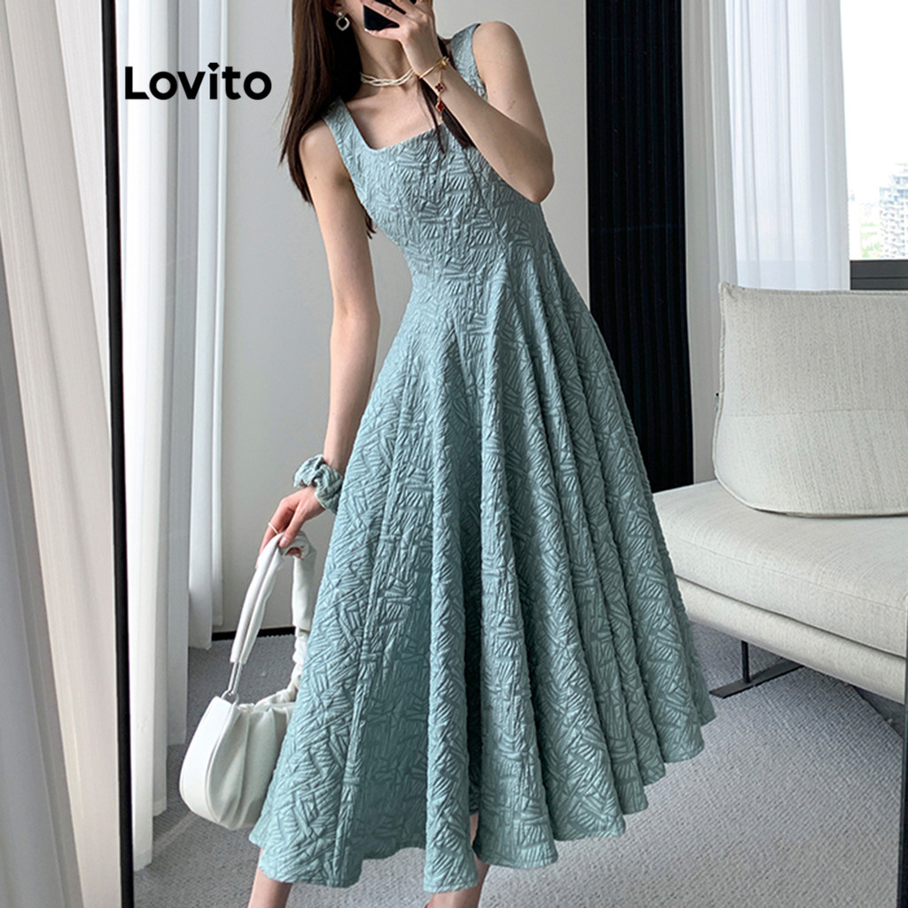 Lovito Elegant vestido feminino Floral Ruffle Embroidery Flounce Zip-Back Fastening Dress for Women LNE13057