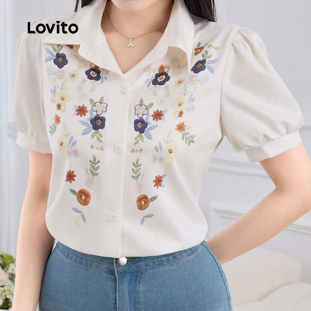 ✅DESTAQUES -❤️Botão -❤️Boa Textura -❤️Primavera e verão ✅DESCRIÇÕES Estampa / Padrão:Floral Estilo:Elegante Tamanho Plus:Não Material:Poliéster Composição:100% Poliéster Tipo de modelagem:Regular Fit Transparência:Não Esticar:Não-elástico Feito na China ✅O PACOTE INCLUI 1XBlusa ✅INTRODUÇÃO LOVITO A Lovito é uma marca em crescimento que acredita no poder das meninas. Estamos comprometidos em oferecer opções de roupas fashion e acessíveis, para todos os estilos, necessidades e identidades. Acreditamos que a moda deve ser divertida, liberadora e fazer você se sentir incrível. Afinal, o melhor acessório para qualquer look é a autoconfiança! ✅NOTAS DE COMPRA Antes de comprar, dê uma olhadinha na tabela de medidas disponível no site. Lembre-se de que, por serem feitas manualmente, as medidas podem variar de 1 a 2 cm. As cores dos produtos também podem ter pequenas diferenças em relação às fotos, dependendo da iluminação e das configurações do seu dispositivo. Siga nossa loja e conheça novos itens e as melhores ofertas para você!! Se você tiver alguma dúvida, converse conosco e responderemos o mais rápido possível.😊