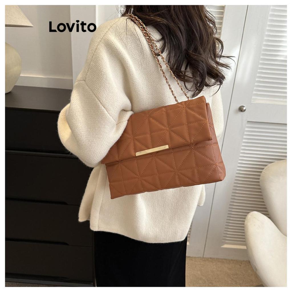 Lovito Elegante grade de arroz simples e versátil bolsa quadrada pequena bolsa de ombro para mulheres LFA62559