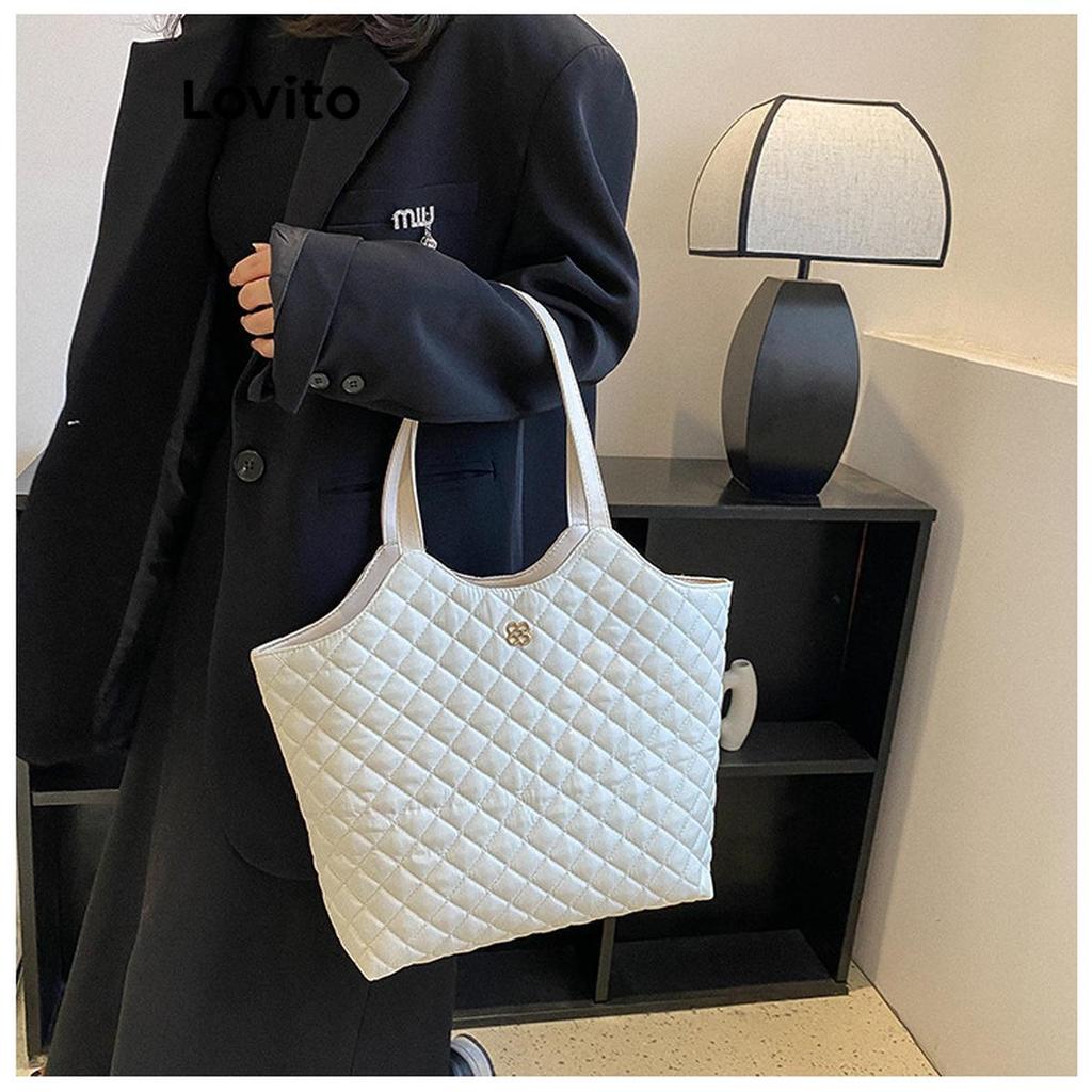 Lovito Elegante Moda Retro Grande Capacidade Rhombic Lattice E Trabalhadores Bolsa De Compras Mulheres LFA52154