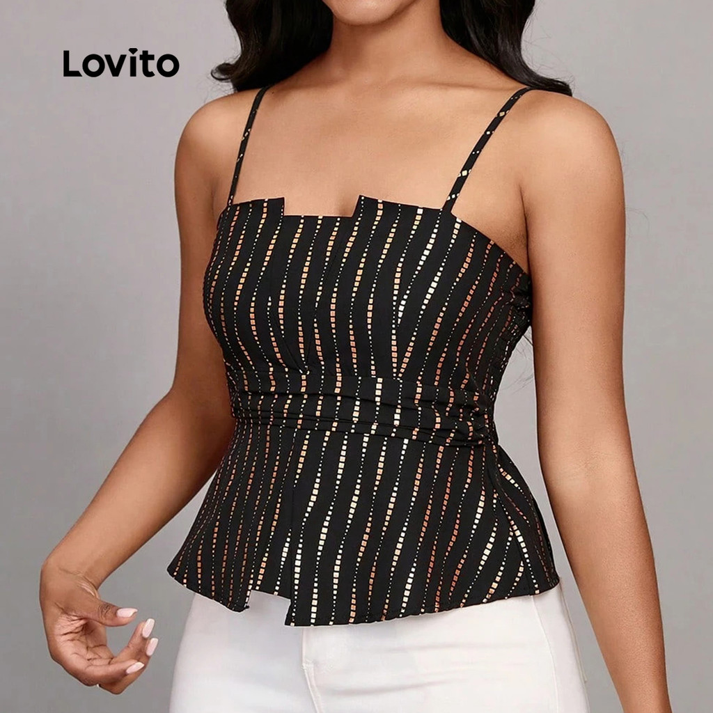 Lovito Elegante Top Glitter Estrutura Linha Primavera/verão Top Preto para Mulheres LBL32270