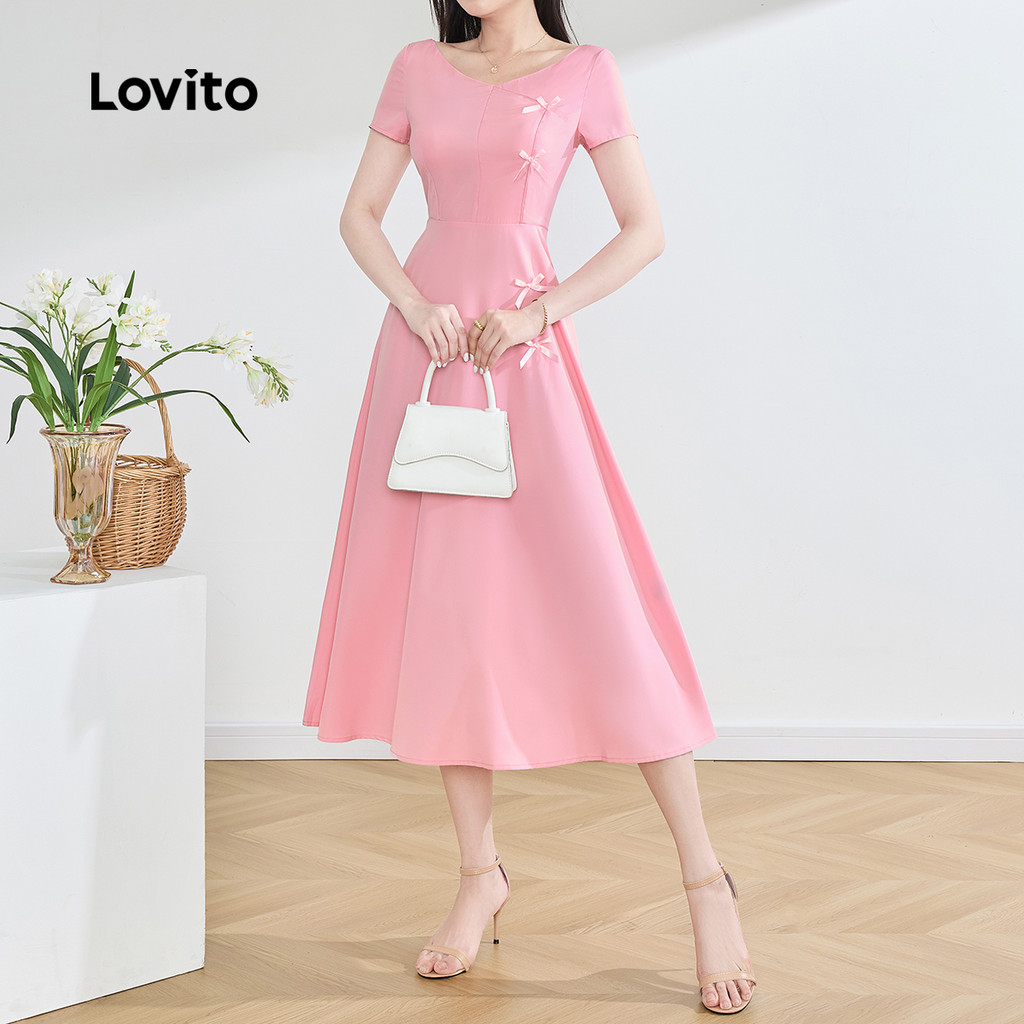 Lovito Elegante Vestido Liso Com Gravata Frontal Primavera/Verão Rosa Claro Para Mulheres LBL25326