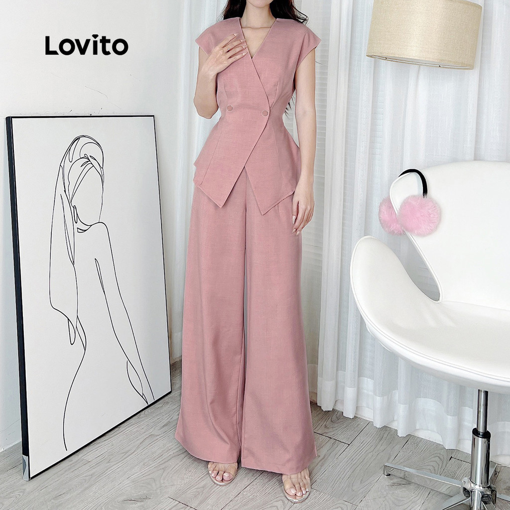 Lovito Elegantes Tops ou Bottoms Botão Clássico e versátil para Primavera/Verão Calças rosa para mulheres L172ED817