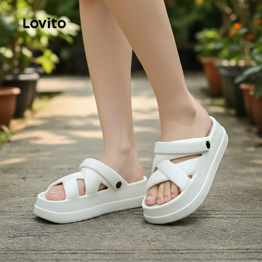 Lovito Feminina Casual Criss Cross Rasteira Sandália LFA60401