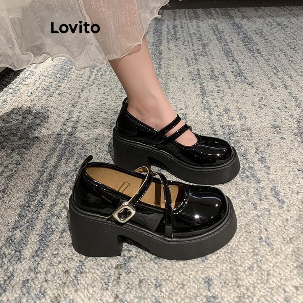 Lovito Feminino Sapato Mary Jane Salto Alto Retro Estilo Preppy Cabeça Redonda Para Mulheres LFA58318