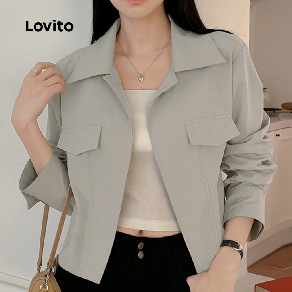 Lovito Jaqueta Casual Cinza Com Bolsos Falsos E Estrutura Reforçada Para O Outono/inverno Ideal Para Mulheres L166AD418