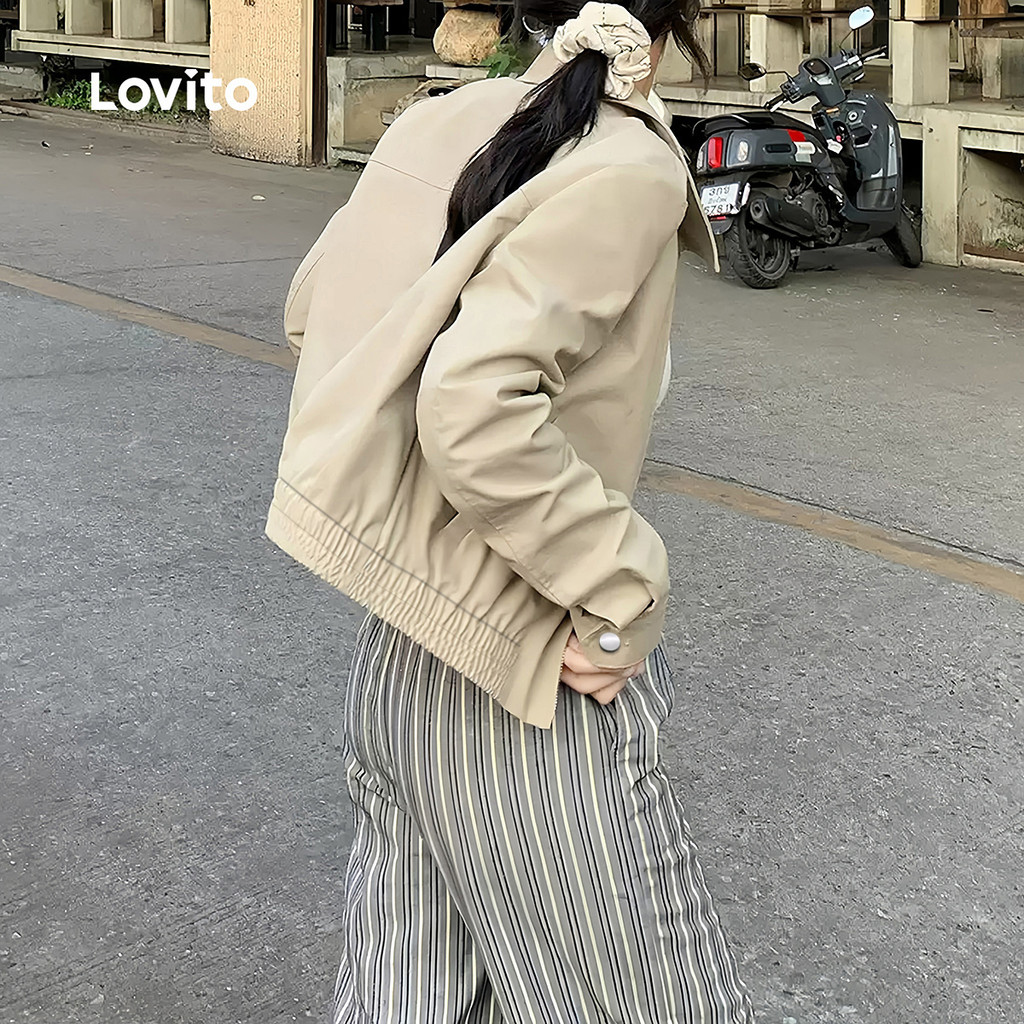 Lovito Jaqueta Casual Confortável Estilosa Zíper Clássica Versátil Outono/inverno Na Cor Cáqui Mulheres L151AD086