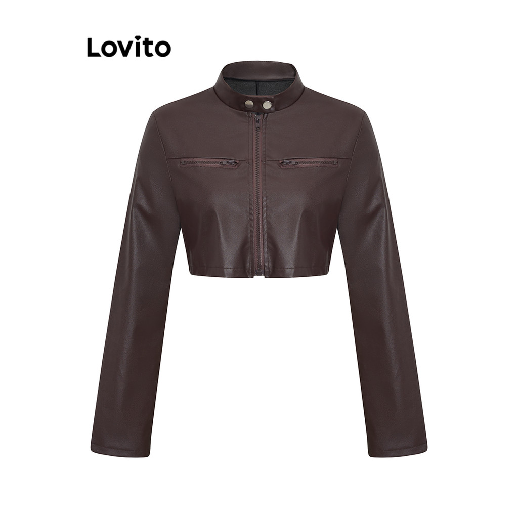 Lovito Jaqueta Casual Corta-Vento/Jaqueta Com Zíper Impermeável E Pontas Para Mulheres L106AD280