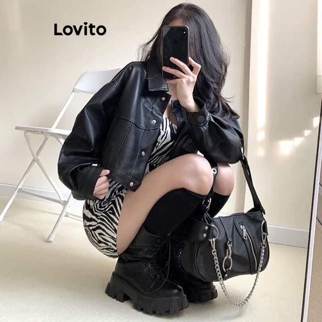 Lovito Jaqueta Casual Feminina com Botões Lisos para Verão e Primavera L76AD091