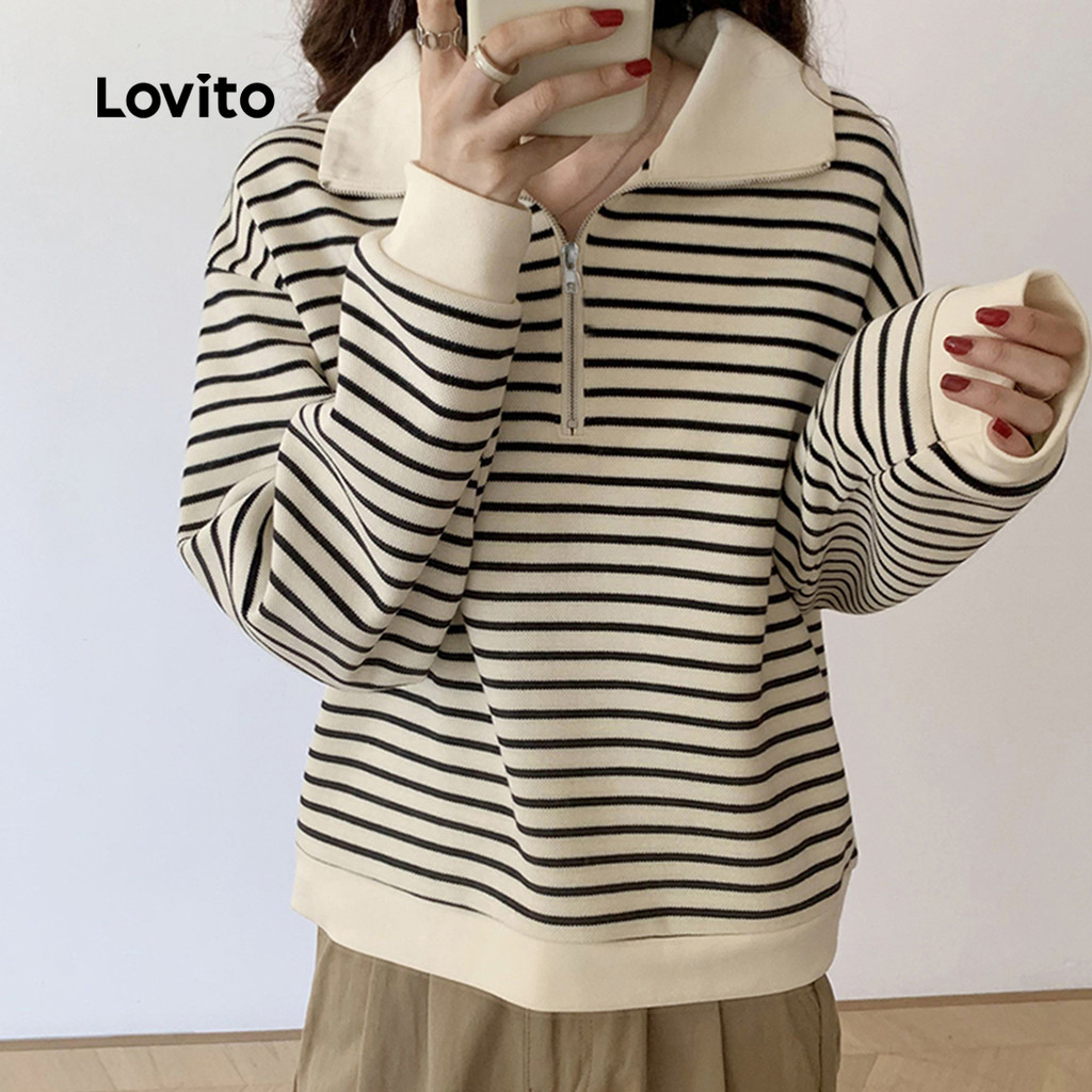 ✅DESTAQUES -❤️Padrão -❤️Clássico e atemporal -❤️Estilo versátil -❤️Roupas da moda garota básica fique à vontade, bkk história de anona Roupa de outono -❤️Macio e confortável -❤️outono e inverno ✅DESCRIÇÕES Estampa / Padrão:listado Estilo: informal Tamanho Plus:Não Material:Poliéster Composição:95% Poliéster + 5% Spandex Tipo de modelagem:Solto Transparência:Não Esticar:Leve alongamento Feito na China ✅O PACOTE INCLUI 1XMoletom ✅INTRODUÇÃO LOVITO A Lovito é uma marca em crescimento que acredita no poder das meninas. Estamos comprometidos em oferecer opções de roupas fashion e acessíveis, para todos os estilos, necessidades e identidades. Acreditamos que a moda deve ser divertida, liberadora e fazer você se sentir incrível. Afinal, o melhor acessório para qualquer look é a autoconfiança! ✅NOTAS DE COMPRA Antes de comprar, dê uma olhadinha na tabela de medidas disponível no site. Lembre-se de que, por serem feitas manualmente, as medidas podem variar de 1 a 2 cm. As cores dos produtos também podem ter pequenas diferenças em relação às fotos, dependendo da iluminação e das configurações do seu dispositivo. Siga nossa loja e conheça novos itens e as melhores ofertas para você!! Se você tiver alguma dúvida, converse conosco e responderemos o mais rápido possível.😊