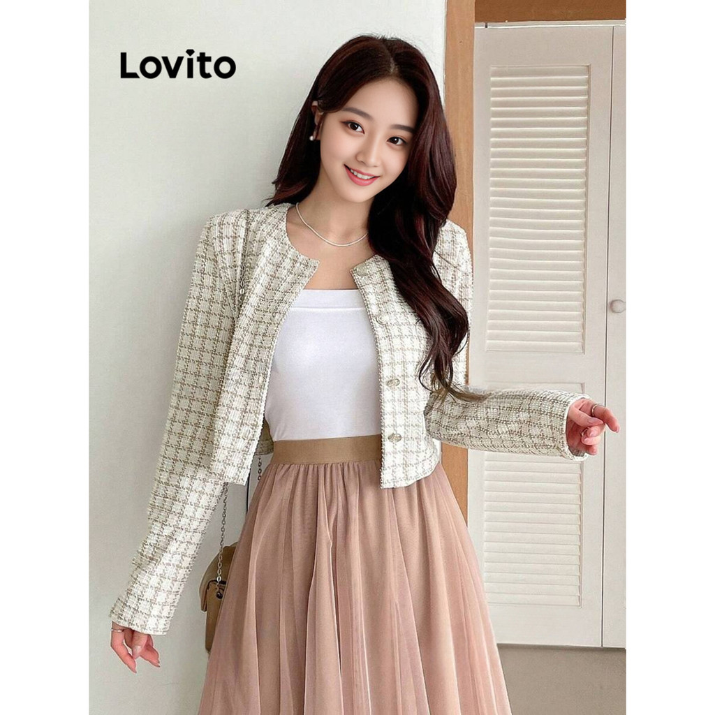 ✅DESTAQUES -❤️Pérolas Pérolas -❤️Botão frontal -❤️Boa textura ✅DESCRIÇÕES s Padrão: Xadrez Estilo: Elegante Tamanho Plus: Não Material: Poliéster Composição: 100%Poliéster Tipo de ajuste: ajuste Regular Transparente: Não Estiramento: Leve Estiramento Região de Origem: China continental ✅REFERÊNCIA DE MODELAGEM A modelo está vestindo: P Altura: 165 cm Peso: 55 kg Busto: 88 cm Cintura: 68 cm Quadris: 93 cm ✅O PACOTE INCLUI 1x Jaqueta ✅Introdução LOVITO Lovito é uma marca emergente que acredita no poder das meninas, comprometido a fornecer opções de roupas elegantes e acessíveis para diferentes estilos, necessidades e identidades. Acreditamos que a moda deve ser divertida, liberando e torna você se sentir ótimo. Depois de todos, o melhor acessório para qualquer visual é autoconfiança. ✅Notas DE COMPRA Por favor, consulte a sua altura e o gráfico de tamanhos antes de comprar. Há diferença de 2-3% de acordo com a medição manual. Todas as fotos de produtos nesta loja são fotos 100% reais. Devido a diferentes luzes e telas, uma diferença de cor sutil e erro real é normal. Siga nossa loja e descubra novos itens e melhores ofertas para você!! Se você tiver quaisquer perguntas, converse conosco e respondemos em breve conforme o possível.😊