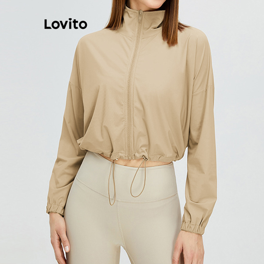 Lovito Jaqueta Esportiva Esportiva Com Cordão Liso Para Mulheres LNL56271