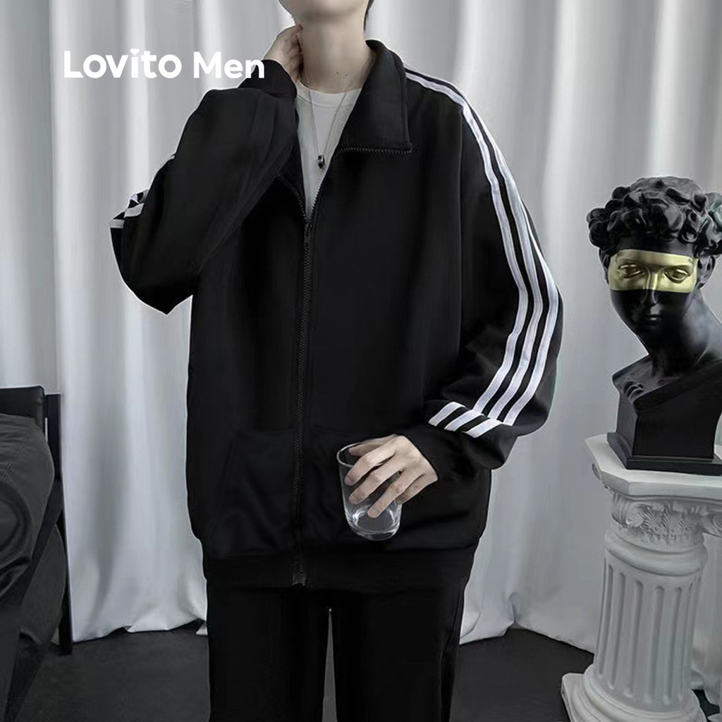 Lovito Jaqueta Masculina Casual Clássica E Versátil Com Detalhes Contrastantes Ideal Para Outono/inverno Preta LNE122168