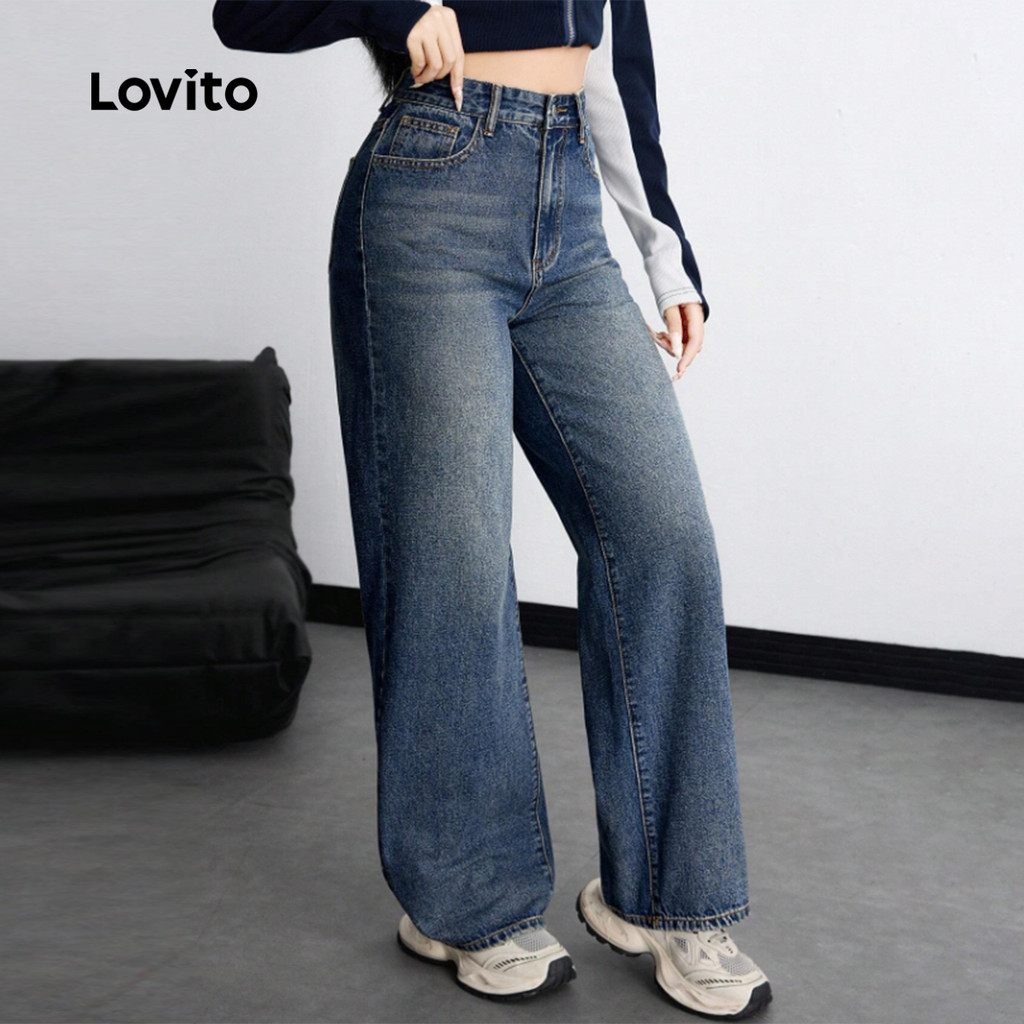 Lovito Jeans Casuais com Zíper Botão e Bolso para Primavera/verão Jeans Azul para Mulheres L171ED248