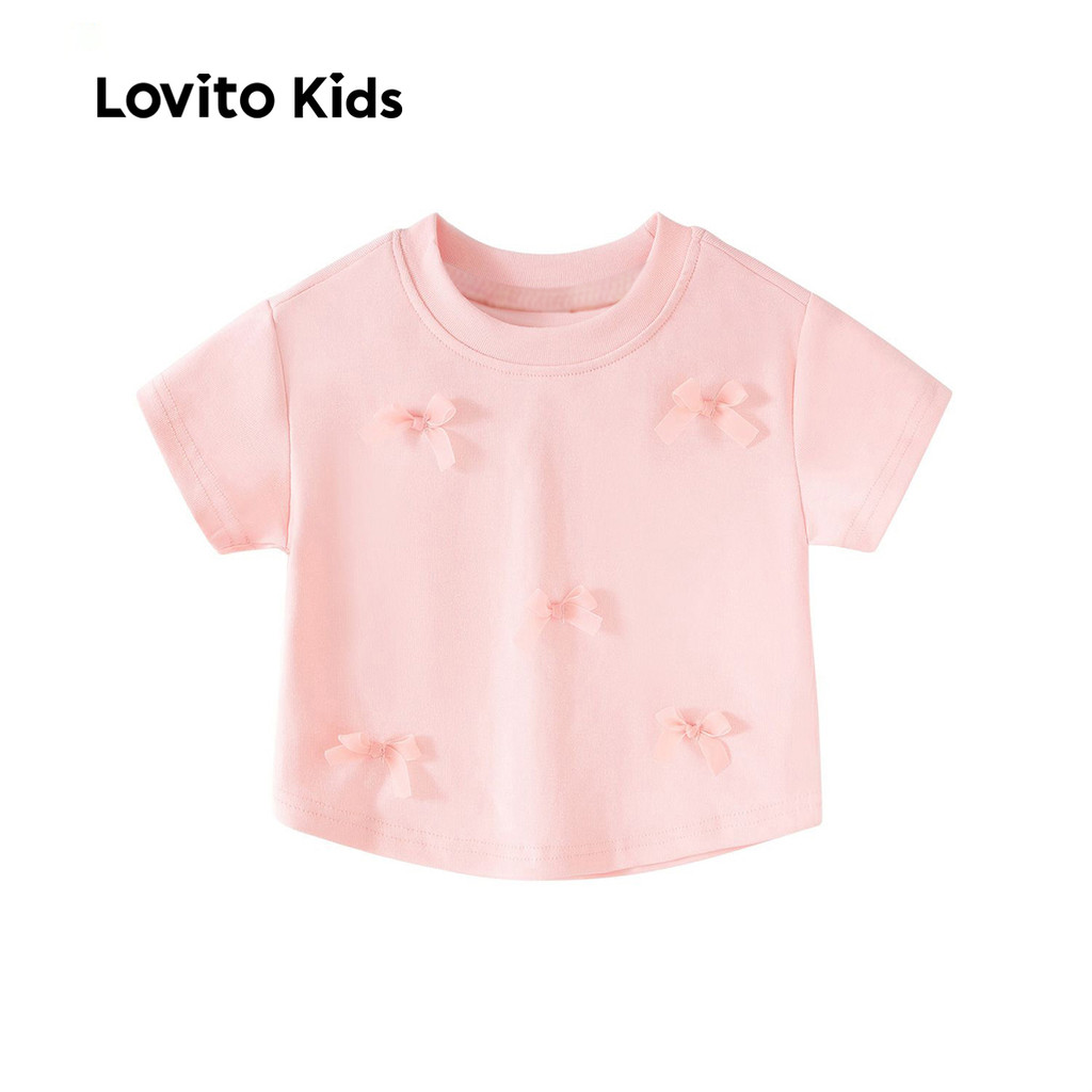 Lovito Kids Camisa Casual com Laço Da Série Morandi de Cores Primavera/verão Camiseta Rosa para menina LNL119165