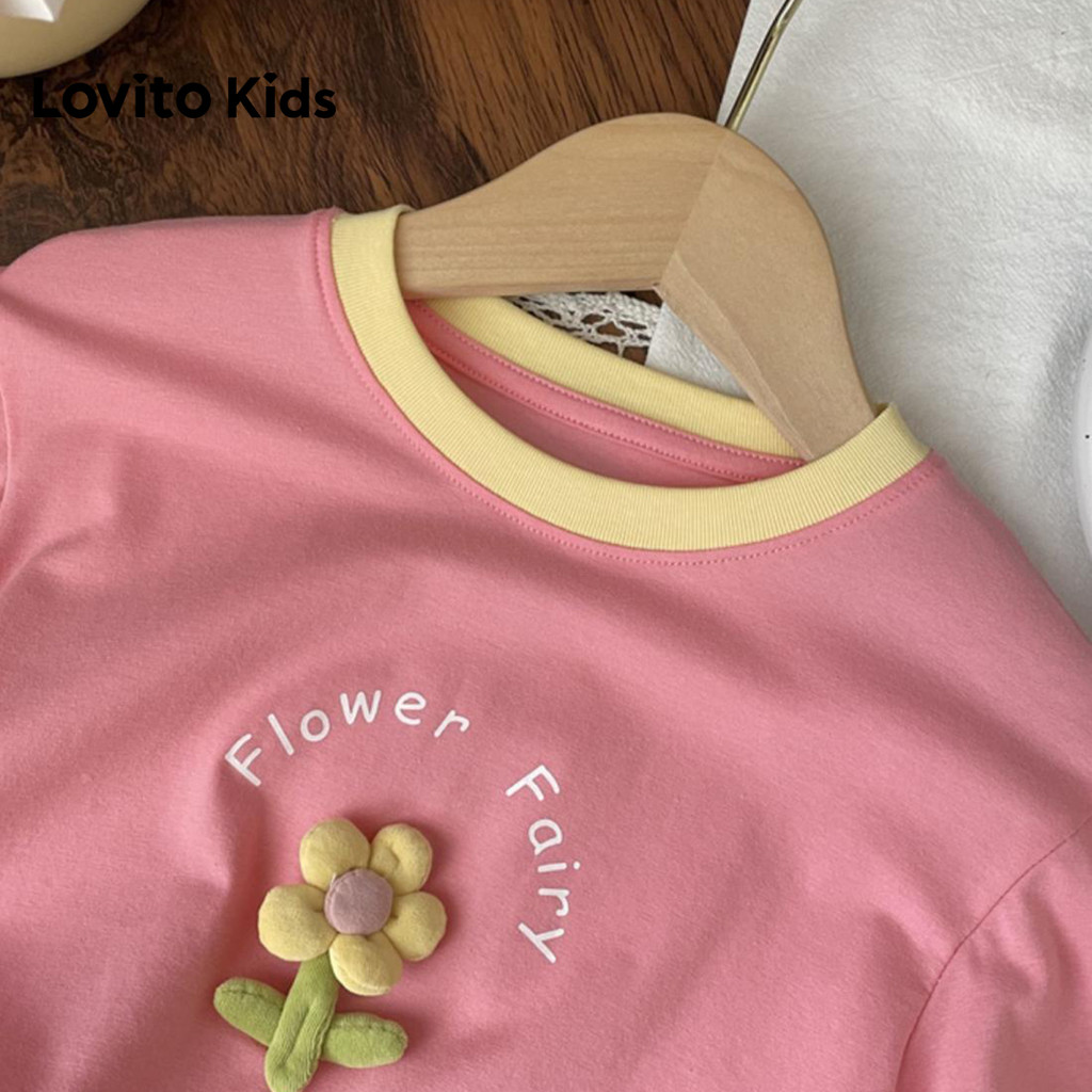 Lovito Kids Camiseta Casual Apliques Primavera/verão Rosa para menina LNL132050