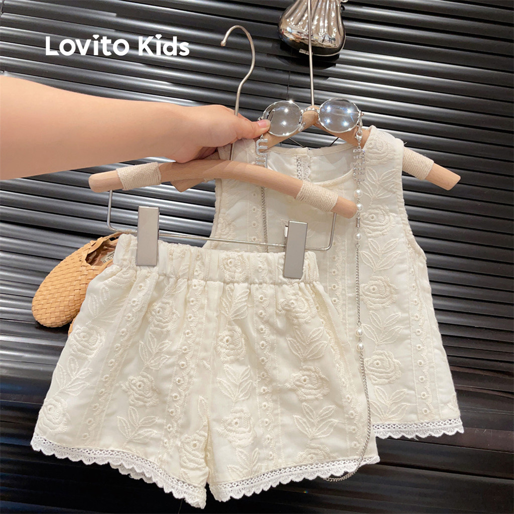 Lovito Kids Conjunto Casual de Shorts Sem Costas para Primavera/verão Conjunto de Shorts brancos LNL115139