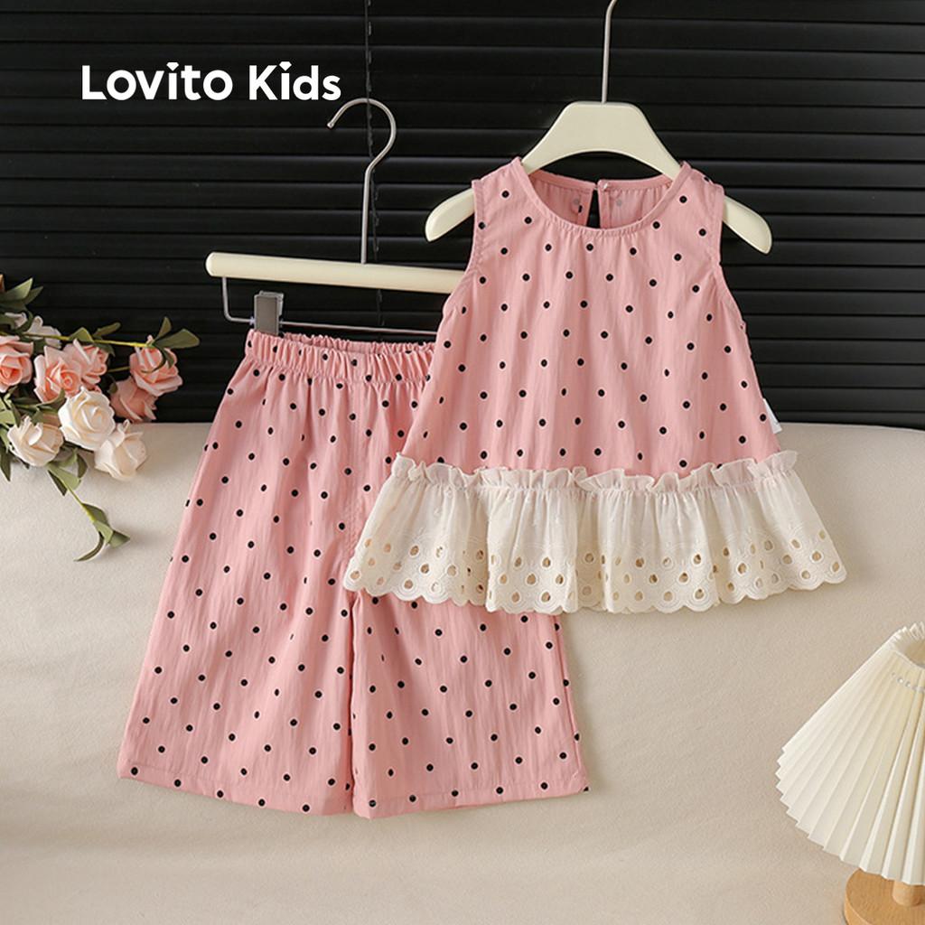 ✅DESTAQUES -❤️Padrão -❤️Renda -❤️Bordado de ilhós -❤️Fresco e confortável -❤️Primavera e verão ✅DESCRIÇÕES Estampa / Padrão:Polka Dot Estilo:Casual Tamanho Plus:No Material: Poliéster Composição:75%Polyester+25%Rayon Tipo de modelagem:Regular Fit Transparência:No Esticar:Non-stretch Feito na China ✅O PACOTE INCLUI 1XConjuntos de calças ✅INTRODUÇÃO LOVITO A Lovito é uma marca em crescimento que acredita no poder das meninas. Estamos comprometidos em oferecer opções de roupas fashion e acessíveis, para todos os estilos, necessidades e identidades. Acreditamos que a moda deve ser divertida, liberadora e fazer você se sentir incrível. Afinal, o melhor acessório para qualquer look é a autoconfiança! ✅NOTAS DE COMPRA Antes de comprar, dê uma olhadinha na tabela de medidas disponível no site. Lembre-se de que, por serem feitas manualmente, as medidas podem variar de 1 a 2 cm. As cores dos produtos também podem ter pequenas diferenças em relação às fotos, dependendo da iluminação e das configurações do seu dispositivo. Siga nossa loja e conheça novos itens e as melhores ofertas para você!! Se você tiver alguma dúvida, converse conosco e responderemos o mais rápido possível.😊