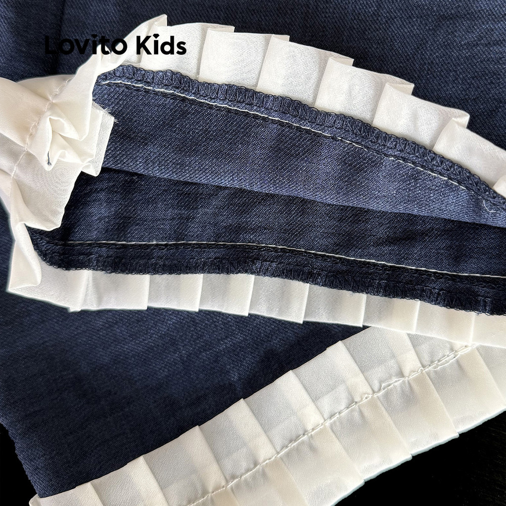 Lovito Kids Conjuntos de Calças Elegantes Alface em Acabamento Bloco de Cores Todas As Estações azul LNL111217