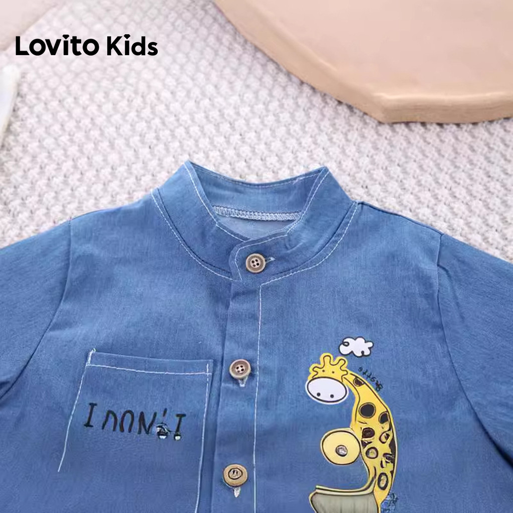 Lovito Kids Conjuntos de Shorts Casuais Padrão Lavado Bolso Primavera/verão Shorts Azul Escuro para Meninos LNL136297
