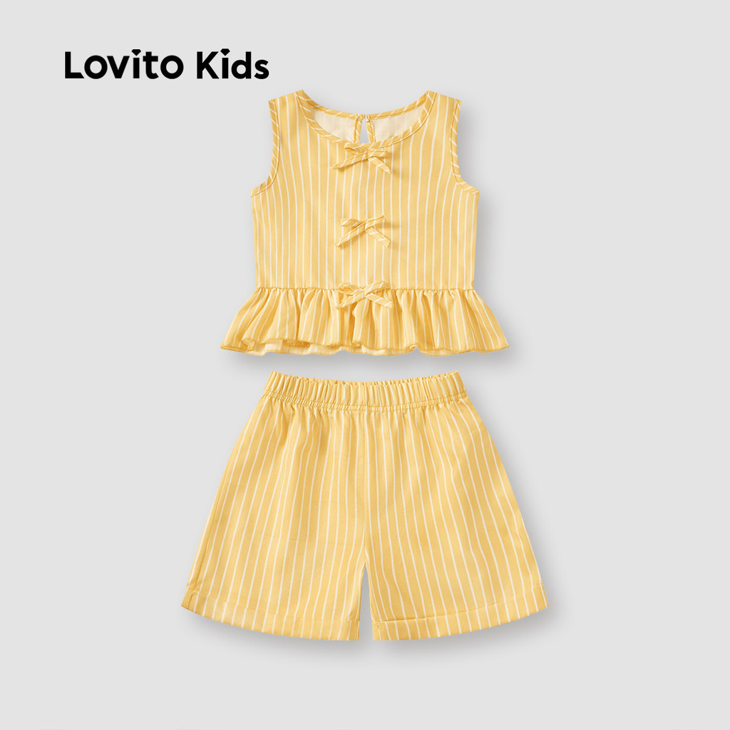 Lovito Kids Conjuntos de Shorts Fofos com Laço e Barra Ruffle Primavera/verão Shorts Sets amarelos L162LD205