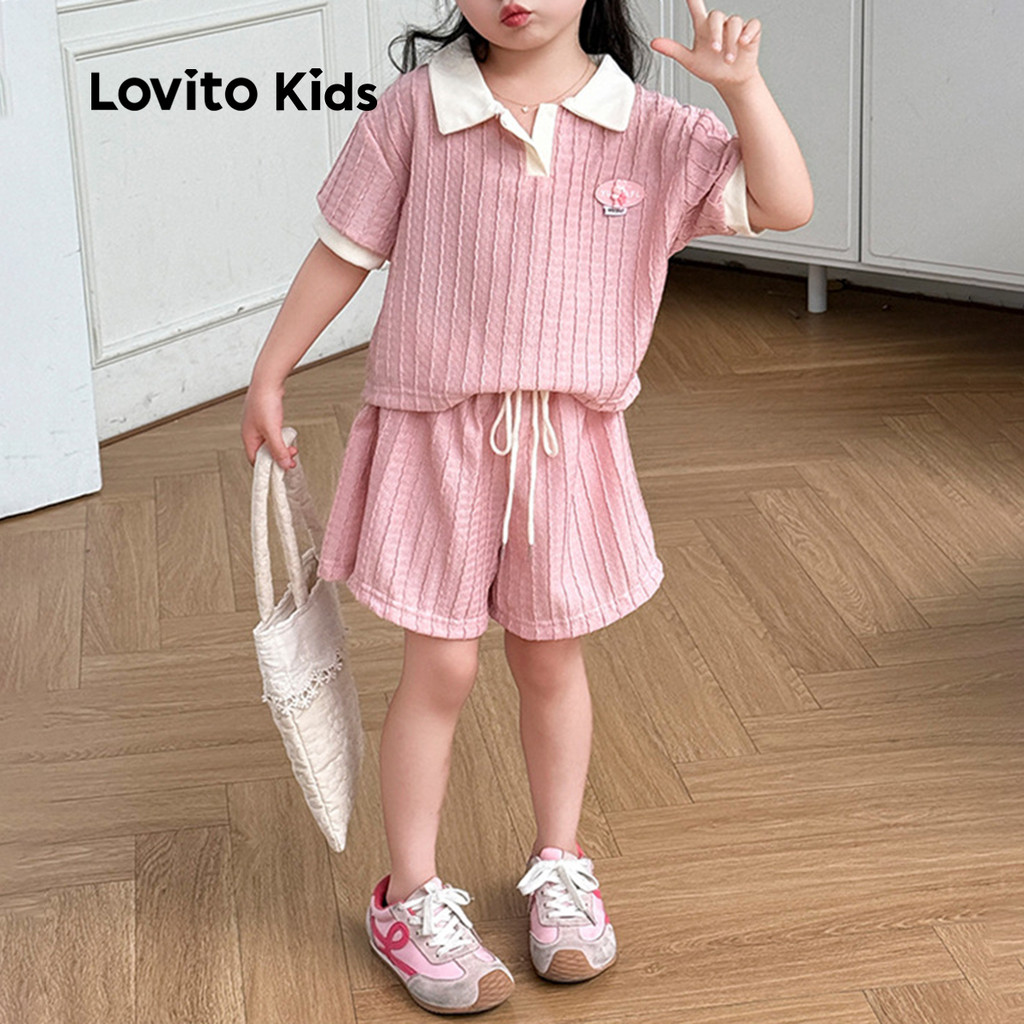 Lovito Kids Conjuntos Elegantes de Shorts com Blocos de Cores e Laço Primavera/verão Rosa LNL119175