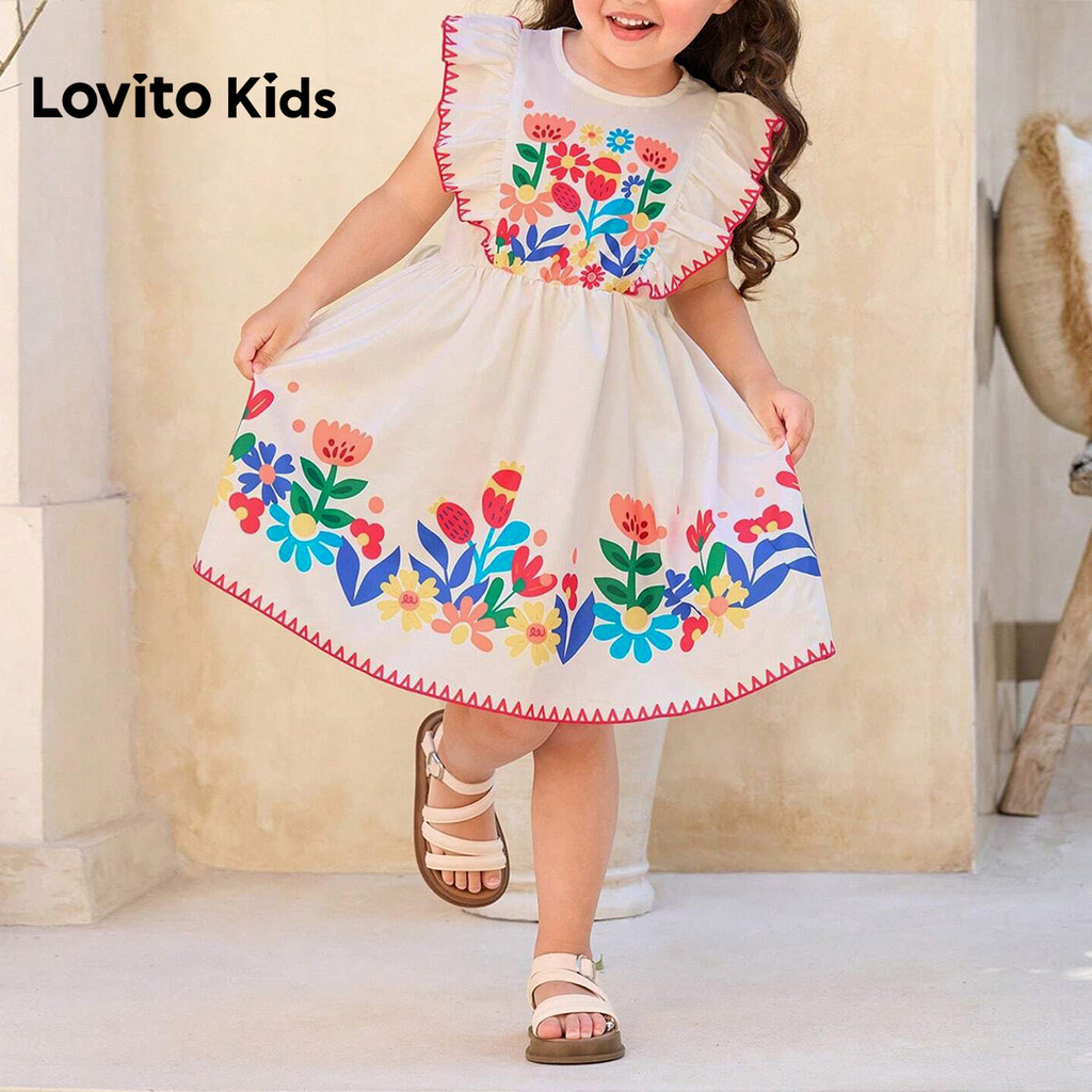 Lovito Kids Vestido Boho com Babados Vestido Primavera/verão para Menina L180LD219