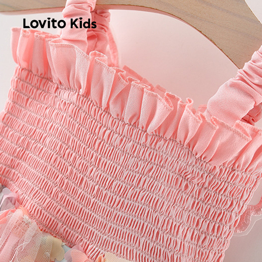 Lovito Kids Vestido Borboleta de Tecido com Costura Primavera/verão para Bebê LCSSCSE8