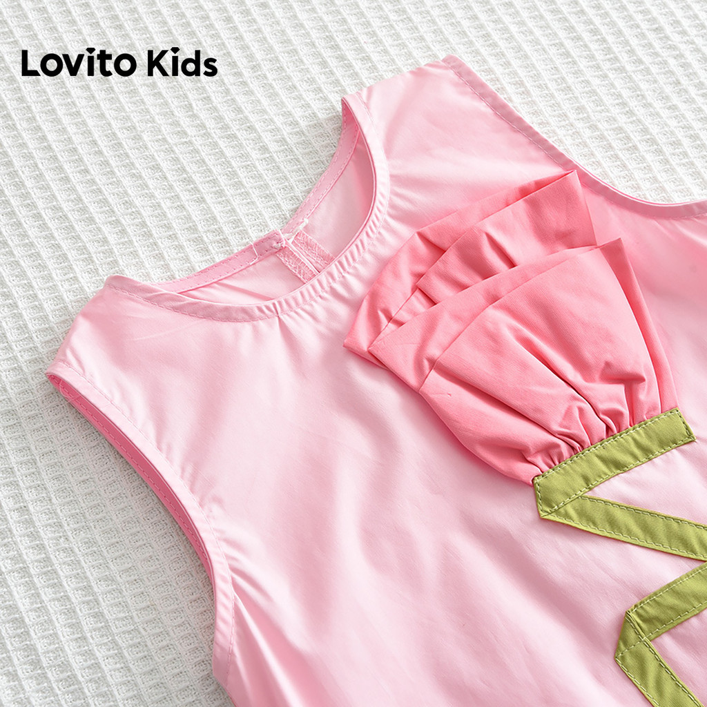 Lovito Kids Vestido Casual com Apliques de Flores para Menina Na Primavera/verão rosa LNL128207