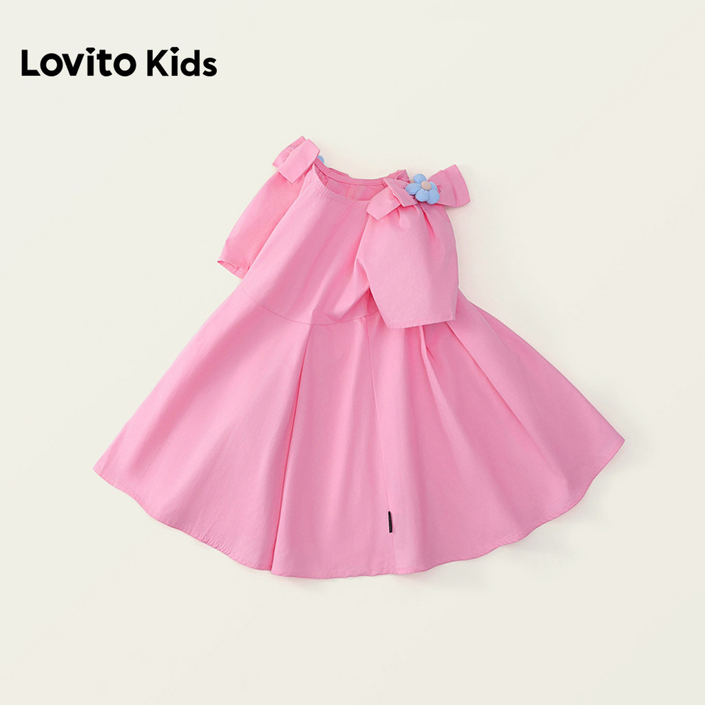 Lovito Kids Vestido Casual com Apliques e Pregas Flores Rosa Claro Primavera/verão para Menina LNL136449