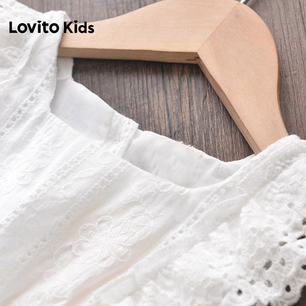 Lovito Kids Vestido Casual com Contraste de Malha Bordado em Ilhós para Primavera/verão Branco para Menina. LNL132441