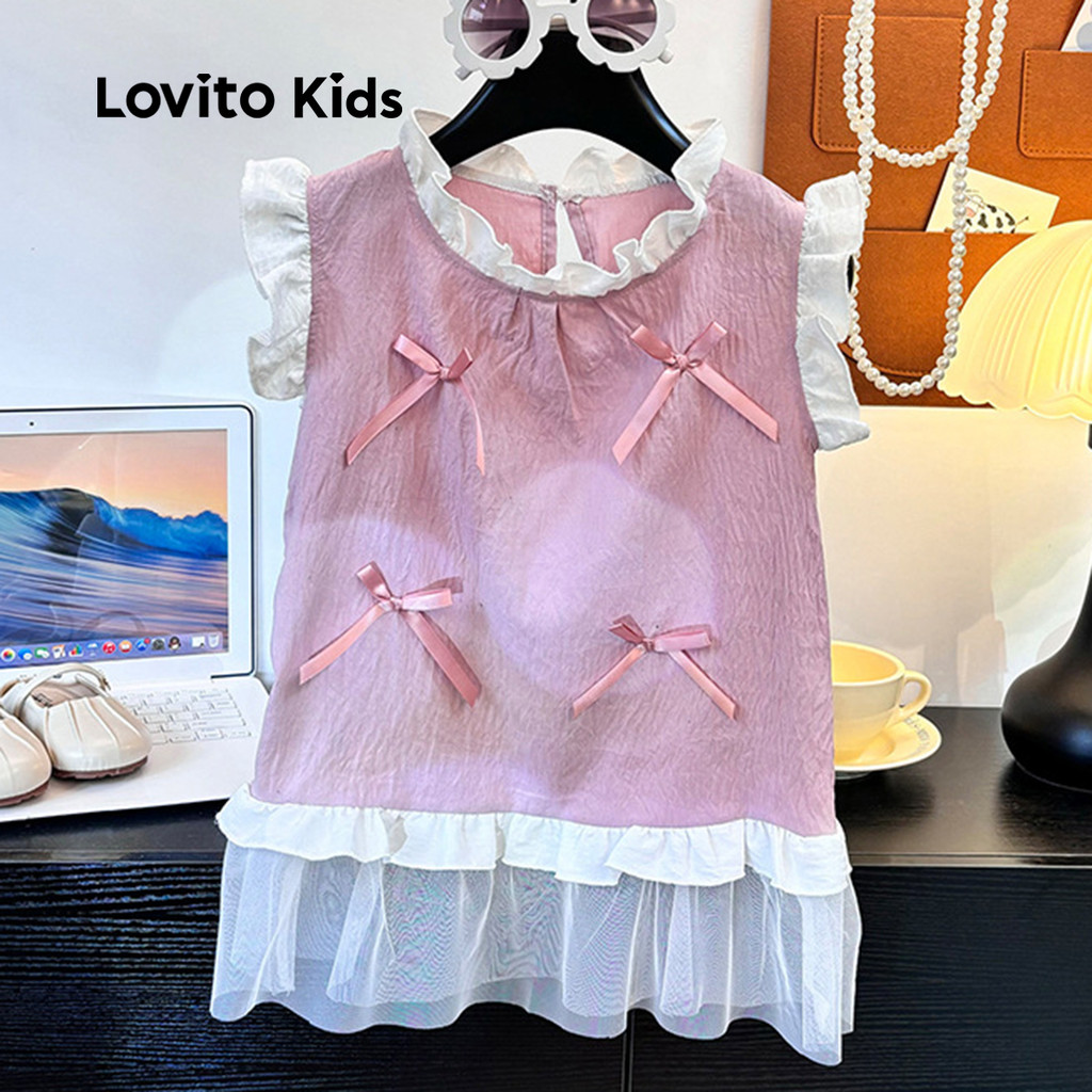 Lovito Kids Vestido Casual com Contraste de Malha Ruffles Primavera/verão Rosa LNL119252