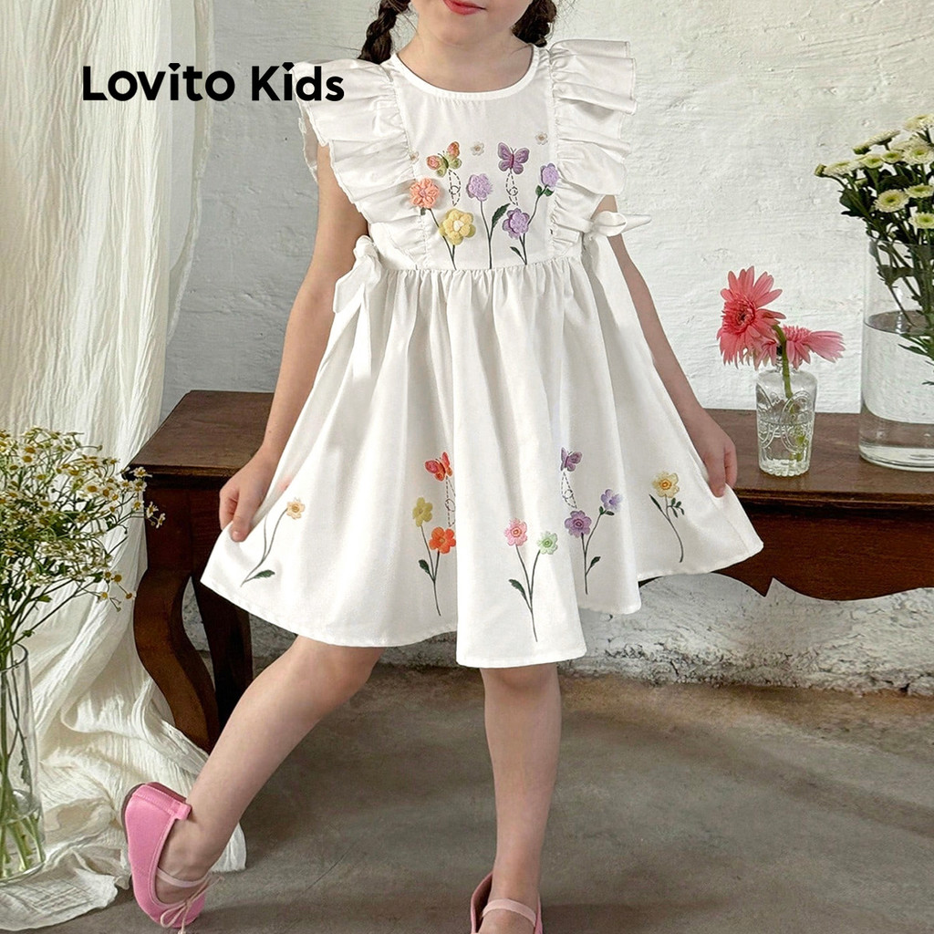 Lovito Kids Vestido Delicado com Babados para Menina Branco para Primavera/Verão L162LD201