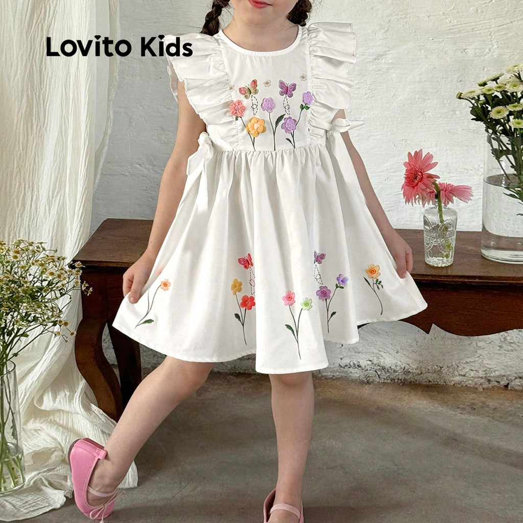 Lovito Kids Vestido Fofo com Babados para Primavera/verão Vestido Branco para menina L162LD201