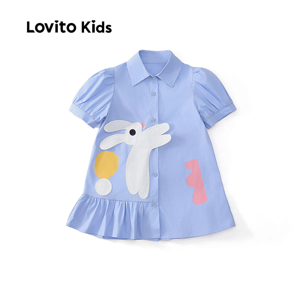 Lovito Kids Vestido Fofo com Botões Na Frente Assimétrico Macio Ao Toque para Todas As Estações azul LNL111214\6