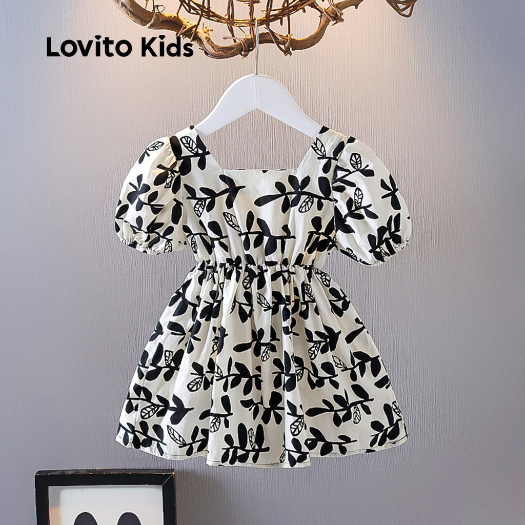 Lovito Kids Vestido Fofo com Laço Na Frente Primavera/verão Preto e Branco Vestido para menina LNL123053