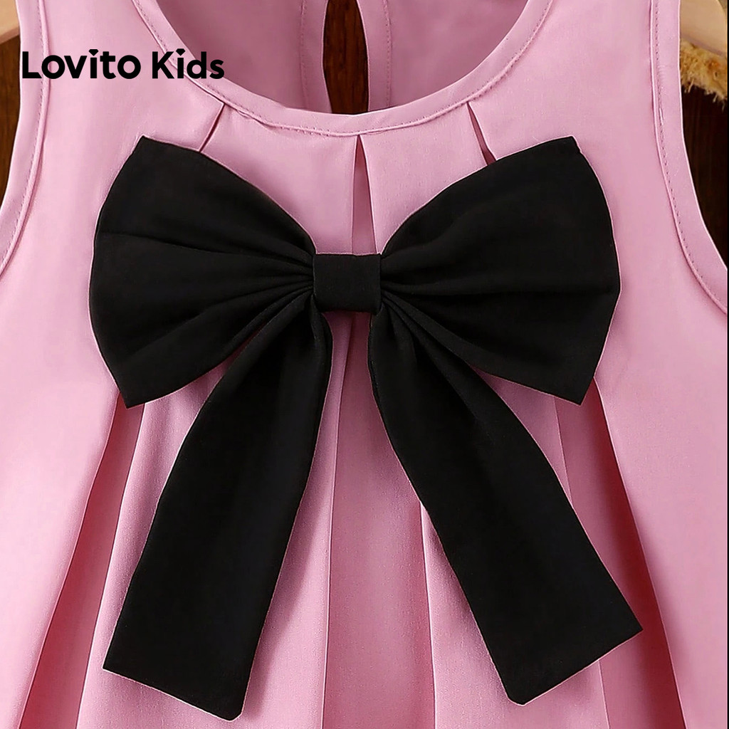 Lovito Kids Vestido Fofo com Laço Plissado Primavera/verão Rosa para menina L160LD210