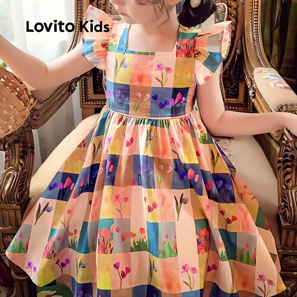 Lovito Kids Vestido Lindo com Babado Vestido de Primavera/verão para menina L160LD219
