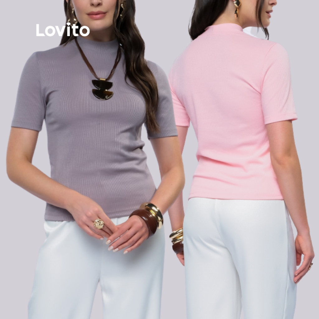 Lovito Kit 2 Blusas Gola Alta Manga Curta Moda Basica Feminina BRTEB1312BRL1342