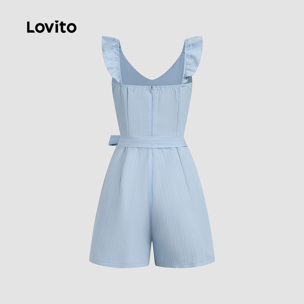 Lovito Macacão Boho Com Cinto E Zíper Primavera/Verão Azul Para Mulheres L134ED832
