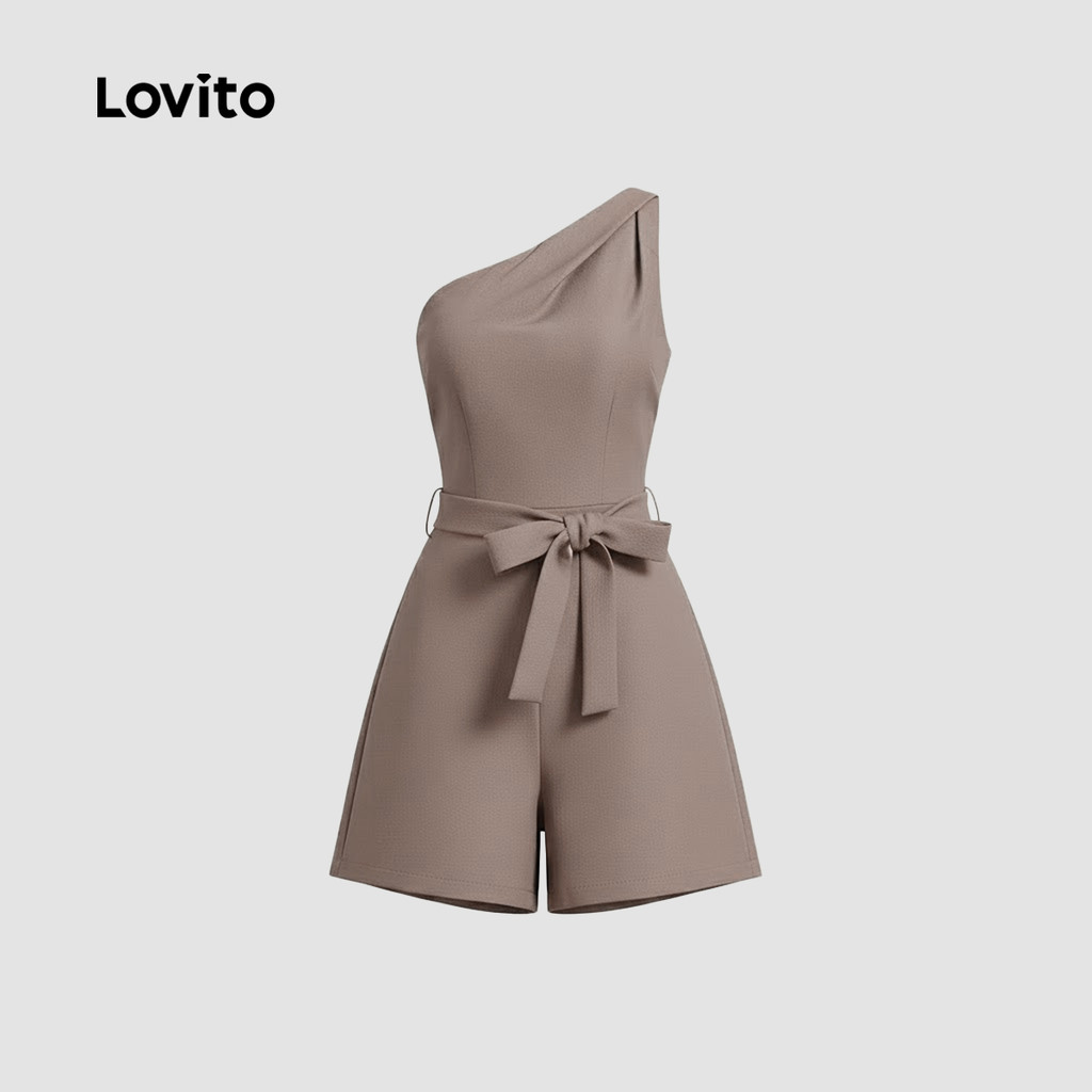 Lovito Macacão Casual Assimétrico Amarrar Primavera/verão Khaki para Mulheres L171ED252
