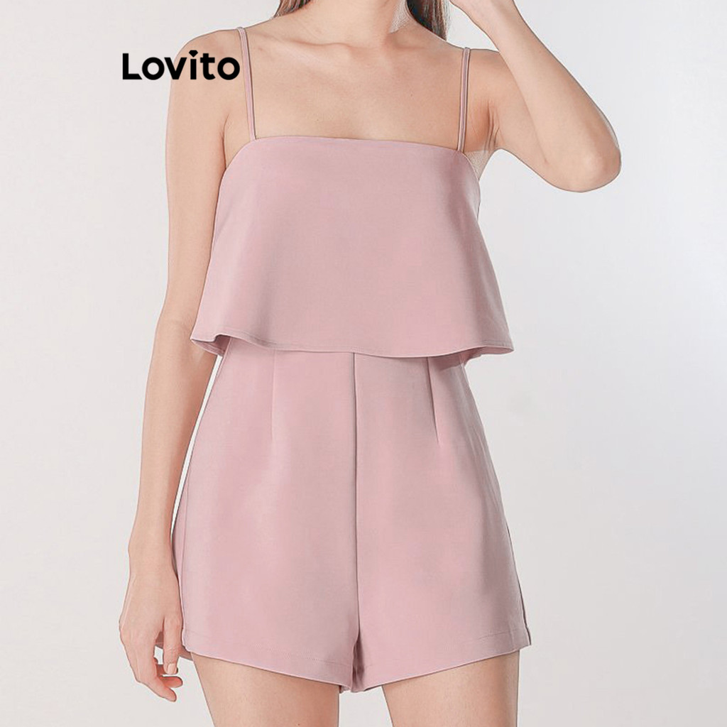 Lovito Macacão Casual Com Babados Lisos Para Mulheres L109MD681