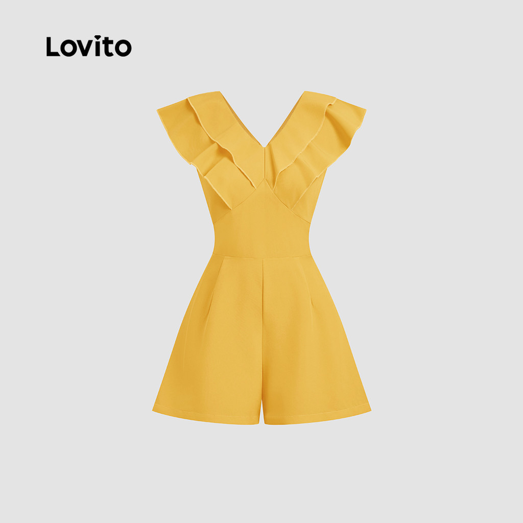 Lovito Macacão Casual com Babados Primavera/verão Amarelo para mulheres L154LD228