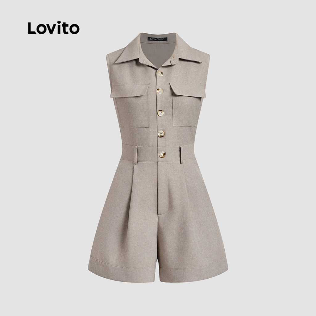 Lovito Macacão Casual com Bolso Botão Tecido Crocante Primavera/verão Cor Cáqui Clara para Mulheres L138ED303