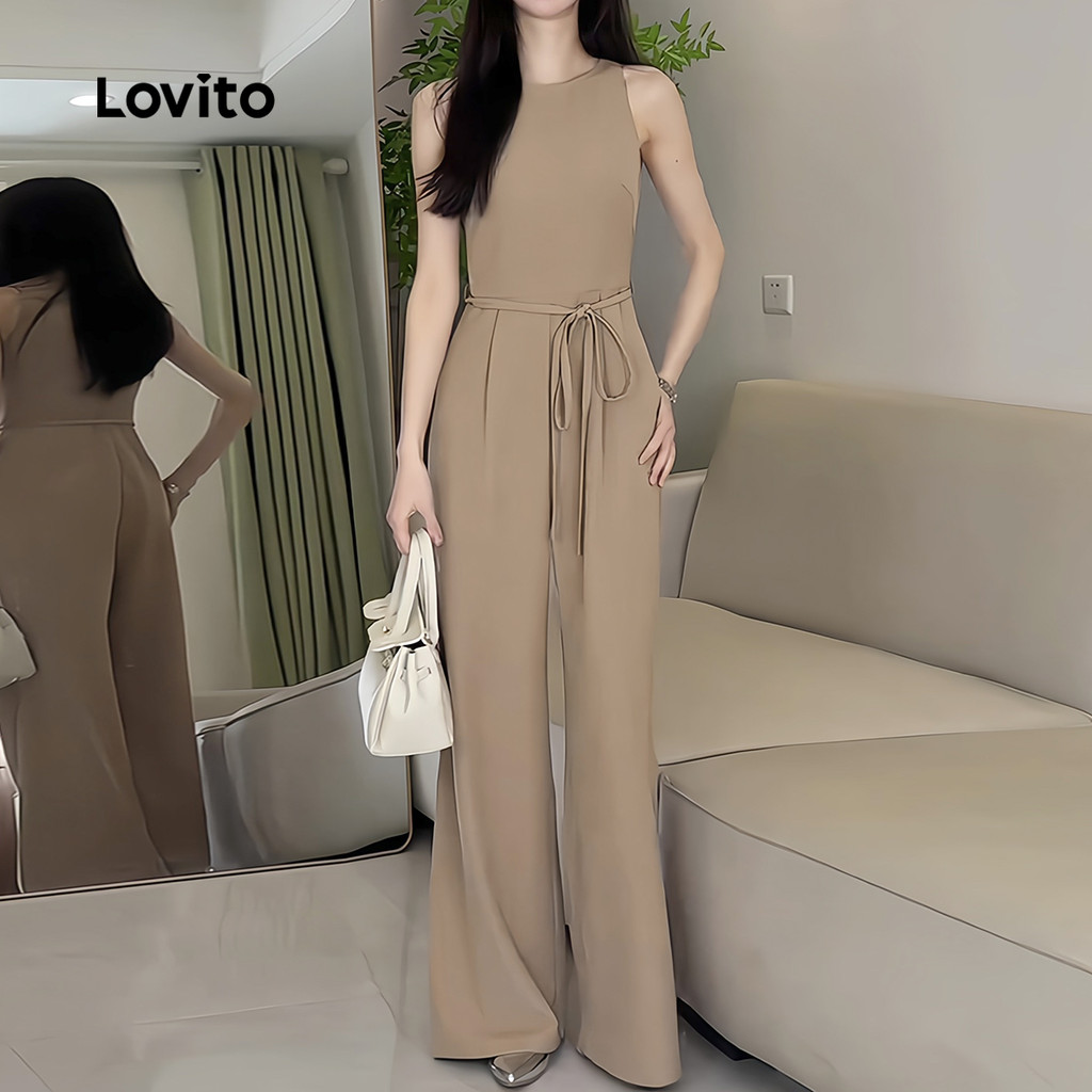 Lovito Macacão Casual Com Bolso Plissado Com Cadarço Primavera/Verão Macacão Cáqui Para Mulheres L134ED696