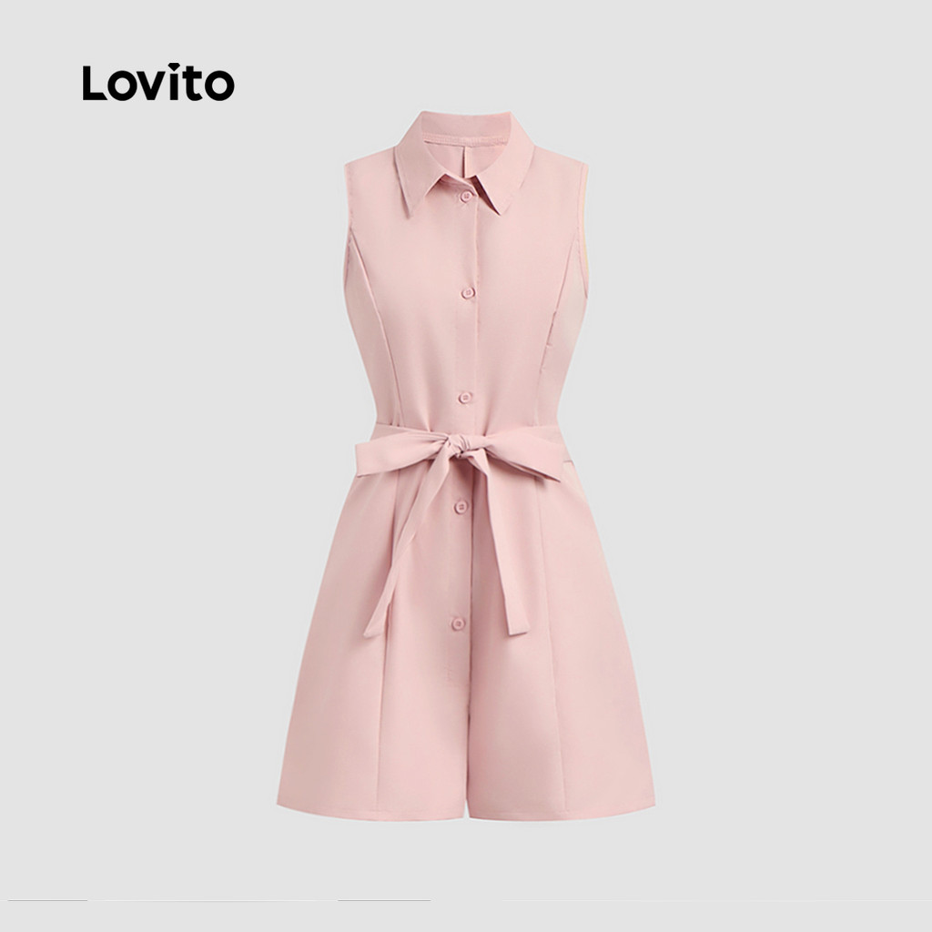 Lovito Macacão Casual com Cinto com Botões Na Primavera/verão Rosa para mulheres L150ED361