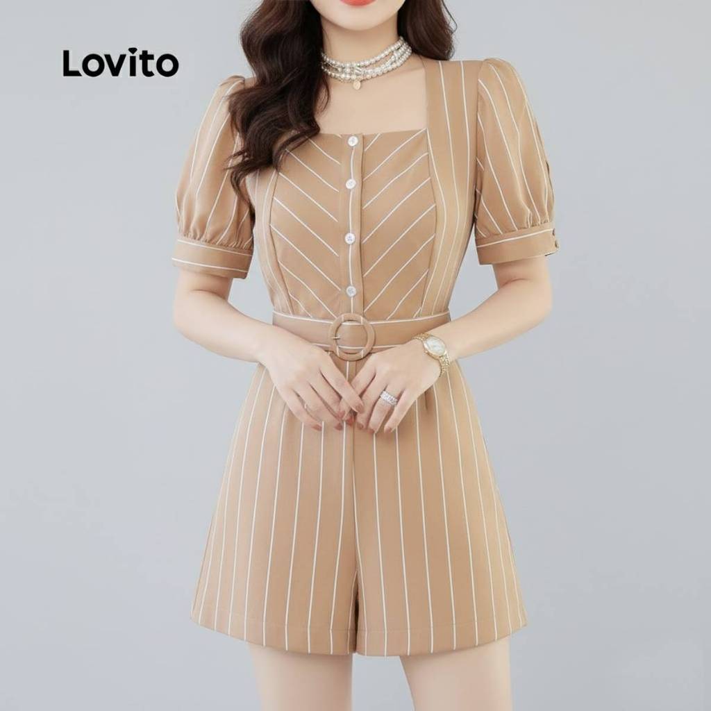 ✅DESTAQUES -❤️Padrão geométricoGeométrico -❤️Cinto -❤️Macio e confortável -❤️Primavera e verão ✅DESCRIÇÕES Estampa / Padrão:Listrado Estilo:Casual Tamanho Plus:No Material:Poliéster Composição:100%Polyester Tipo de modelagem:Regular Fit Transparência:No Esticar:Non-stretch Feito na China ✅O PACOTE INCLUI 1XMacacão ✅INTRODUÇÃO LOVITO A Lovito é uma marca em crescimento que acredita no poder das meninas. Estamos comprometidos em oferecer opções de roupas fashion e acessíveis, para todos os estilos, necessidades e identidades. Acreditamos que a moda deve ser divertida, liberadora e fazer você se sentir incrível. Afinal, o melhor acessório para qualquer look é a autoconfiança! ✅NOTAS DE COMPRA Antes de comprar, dê uma olhadinha na tabela de medidas disponível no site. Lembre-se de que, por serem feitas manualmente, as medidas podem variar de 1 a 2 cm. As cores dos produtos também podem ter pequenas diferenças em relação às fotos, dependendo da iluminação e das configurações do seu dispositivo. Siga nossa loja e conheça novos itens e as melhores ofertas para você!! Se você tiver alguma dúvida, converse conosco e responderemos o mais rápido possível.