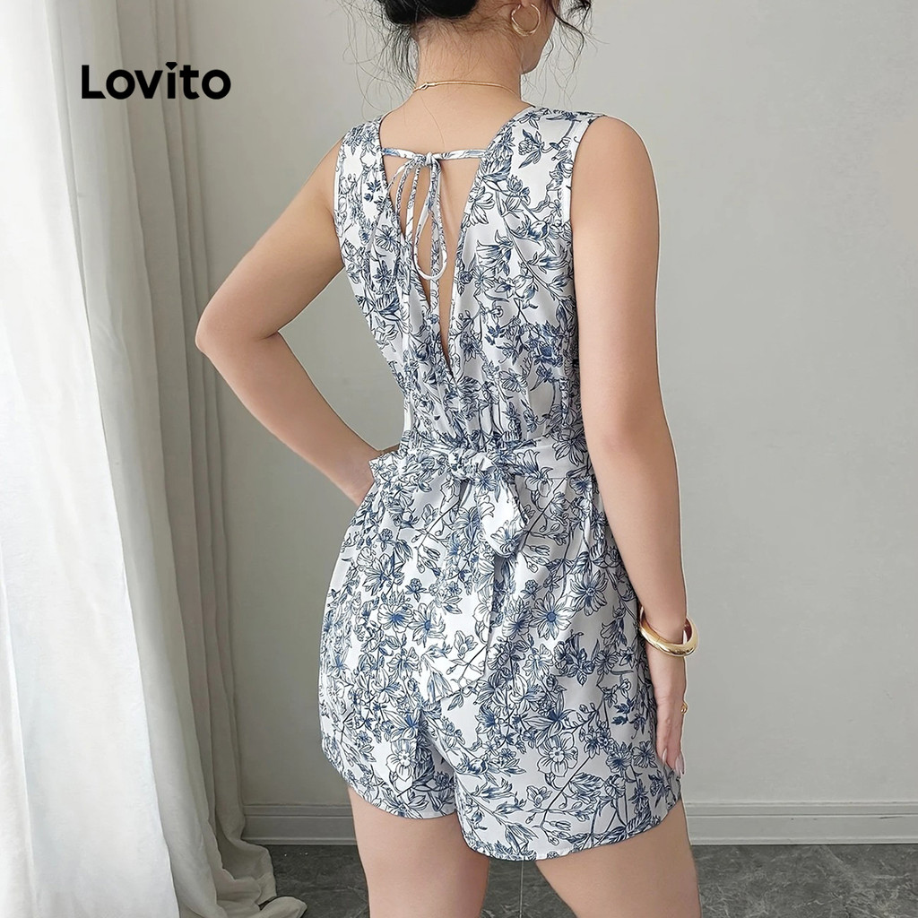 Lovito Macacão Casual Laço Nas Costas com Fenda Macio e Confortável para Primavera/verão para Mulheres L138ED214