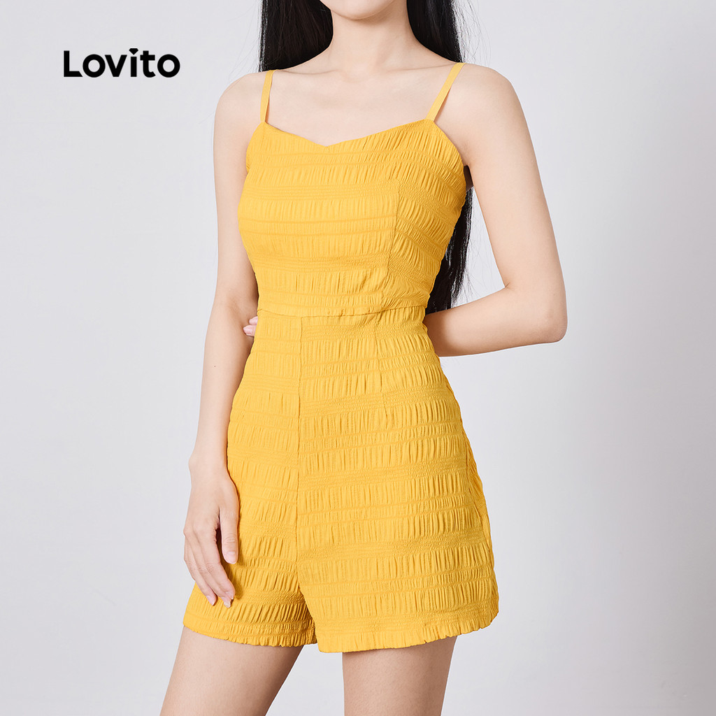 Lovito Macacão Casual liso plissado com alça de ombro ajustável para mulheres L129ED670