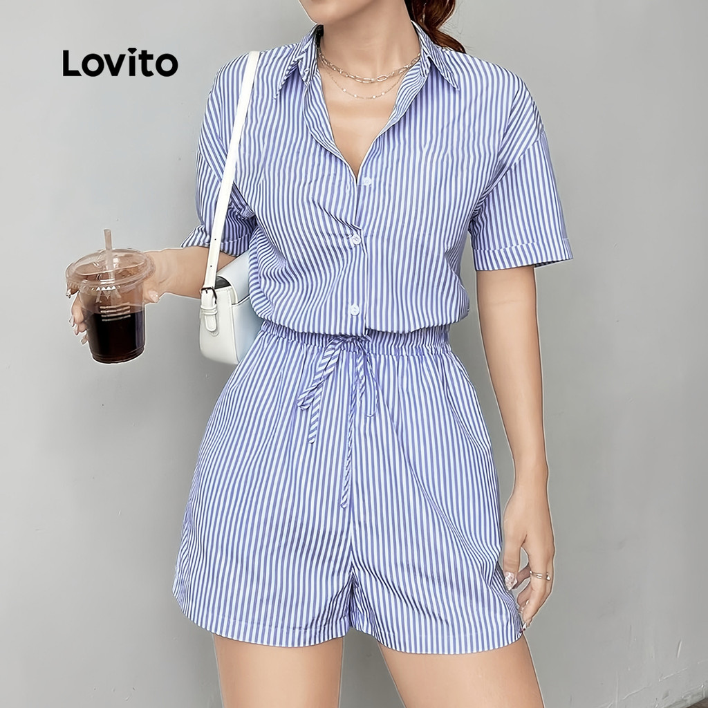 ✅Destaques -❤️Botão -❤️Amarrar -❤️Leve E Respirável ✅Descrições Estampa: Listrada Estilo: Casual Tamanho Plus: Não Material: Poliéster Composição: 100% Poliéster Tipo De Caimento: Regular Transparência: Não Elasticidade: Não Elástica Região De Origem: China Continental ✅Referência De Caimento Modelo Veste: P Altura: 165 Cm Peso: 55 Kg Busto: 88 Cm Cintura: 68 Cm Quadris: 93 Cm ✅O Pacote Inclui 1 Macacão ✅Introdução À Lovito A Lovito É Uma Marca Emergente Que Acredita No Poder Feminino, Comprometida Em Oferecer Opções De Roupas Modernas E Acessíveis Para Diferentes Estilos, Necessidades E Identidades. Acreditamos Que A Moda Deve Ser Divertida, Libertadora E Fazer Você Se Sentir Bem. Afinal, O Melhor Acessório Para Qualquer Look É A Autoconfiança. ✅Notas De Compra Por Favor, Consulte Sua Altura E A Tabela De Tamanhos Antes De Comprar. Há Uma Diferença De 2 A 3% Devido À Medição Manual. Todas As Fotos Dos Produtos Nesta Loja São 100% Reais. Devido Às Diferenças De Luz E Tela, É Normal Haver Uma Sutil Diferença De Cor E Erros Reais. Siga Nossa Loja E Descubra Novos Itens E As Melhores Ofertas Para Você!! Se Tiver Alguma Dúvida, Entre Em Contato Conosco E Responderemos O Mais Breve Possível.😊